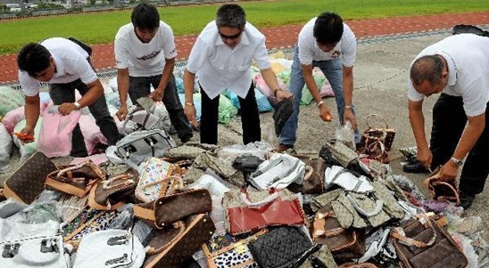 菲律賓政府集中銷毀鞋包等假冒名牌商品