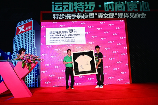 “多年來,特步一直堅持娛樂明星代言。韓庚外在形象陽光、健康;內在特質與特步所追求的‘時尚、自由、個性’的品牌精神高度契合。我們以韓庚為代言,除了采用常規的品牌宣傳方式之外,還會重點發揮網絡的宣傳作用,充分利用韓庚在廣大歌迷群體中的超高人氣,以創新的營銷策略推動集團品牌的打造及推廣工作。”特步(中國)有限公司高級副總裁葉齊在媒體見面會現場表示。