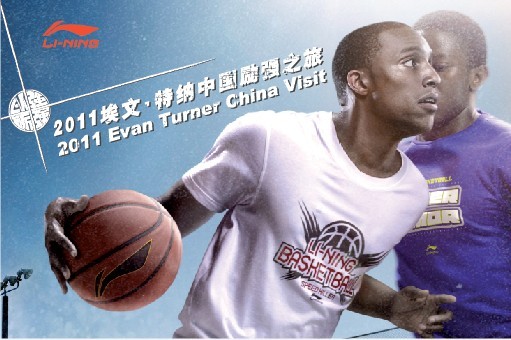 本次訪華,特納在為期8天的“2011埃文-特納中國礪強之旅”中,將先后出現在北京、蘇州、杭州、廣州等城市,參與李寧籃球3+1挑戰賽,感受李寧籃球大篷車,參觀李寧籃球后衛訓練營,觀看NBL聯賽,并使用個人微博與球迷進行互動,分享他在中國的見聞。當然,在本次“2011埃文-特納中國礪強之旅”中,特納最重要的工作還是揭曉個人Logo,而這也是他第一次擁有個人Logo,十分值得期待。