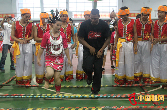 活動開場先是一段富有“中國韻味”的舞獅表演,引得洛瑞及現場觀眾頻頻鼓掌喝彩。稍后洛瑞還與師大籃球隊切磋球技,出身后衛已是“秀場”上的老手,又擁有著美國黑人的街舞天賦,洛瑞帶領師大的籃球健將們將比賽打得妙趣橫生,笑料不斷。 最后,海南姑娘和小伙子們為洛瑞帶來竹竿舞,這頓時讓洛瑞躍躍欲試?蓜e看洛瑞在NBA威風八面,對這竹竿舞可是一竅不通,時不時還要冒著被夾到腳的危險,小心翼翼、略顯笨拙的動作讓現場觀眾笑得前仰后合。