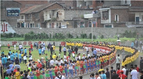 9月22日,在廣西河池舉行的紅水河民族體育歡樂節上,兩支隊伍穿上長達50米的壯族板鞋行走競技,其中一支隊伍多達120人,最后行走180米的距離,挑戰吉尼斯世界紀錄。