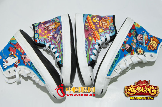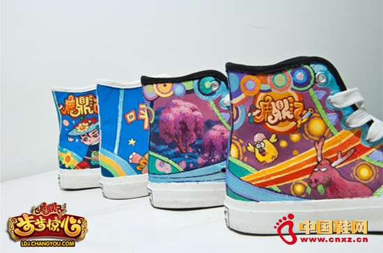 【中國鞋網-滾動快訊】由搜狐暢游與唐人影視聯手打造的穿越武俠網游大作《鹿鼎記之步步驚心》自9月19日公測以來受到了大量玩家的喜愛與支持,有的玩家選擇廢寢忘食在游戲里盡享快樂,有的玩家通過畫漫畫、寫小說等表達游戲的感受。但是,如果有的玩家選擇把心愛的游戲穿到腳上,是不是很另類呢?今日,一名《鹿鼎記之步步驚心》有愛玩家利用十一假期精心手繪制作了兩雙“鹿鼎記主題帆布鞋”,其精致的圖案和卡通的造型不僅讓人眼前一亮,大呼“我也想買!”
