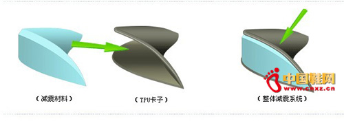 產品介紹:根據力學科技功能設計,一種由TPU卡子卡住減震器材料的中底系統,在整個跨步過程中起到緩沖推進的作用,與傳統緩沖相比,結構性組件能夠提供更穩定,更長久的緩沖和推進作用,此標識圖案采用其剖面的結構形態。
