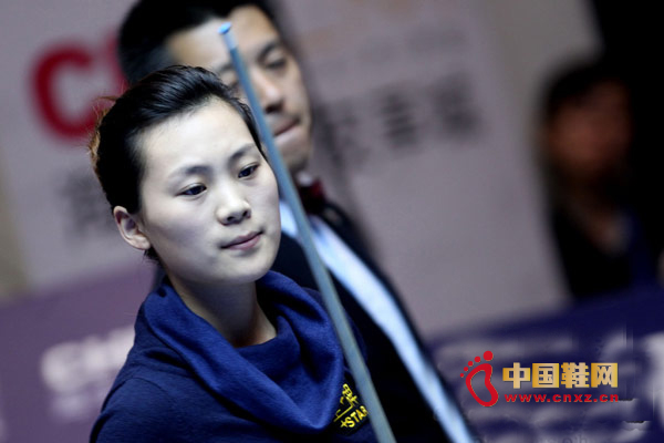 【-賽事追蹤】10月26日,2011海寧中國皮革城杯CBSA美式9球世界公開賽進入正賽第二天的爭奪,圖為劉莎莎在比賽中。(-最專業最權威的鞋業資訊中心)