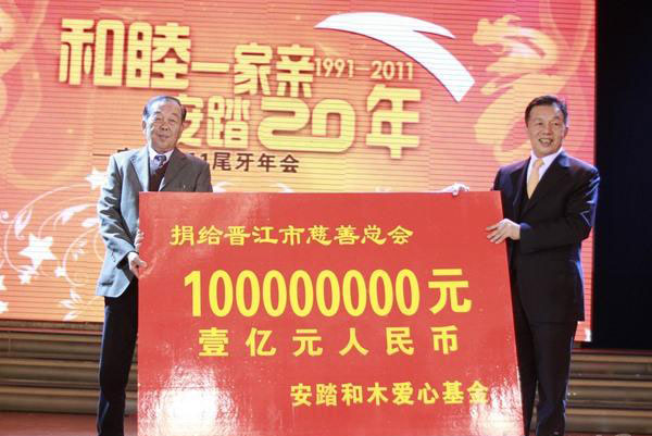【-品牌動態】昨夜,晉江市慈善總會再添一筆巨額善款——1億元。這筆巨額善款由集團捐出,并在晉江市慈善總會設立“安踏和木愛心基金”。