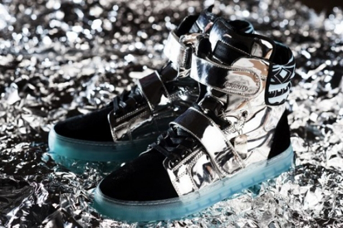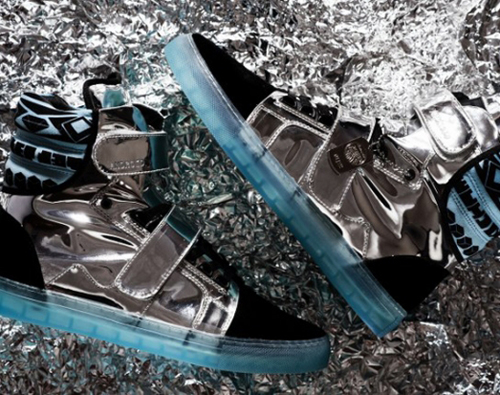 鞋面是由帶有金屬反光感的銀色皮革制成,鞋頭和鞋跟則選擇了黑色的翻毛皮作為映襯,既顯又具科幻感。最為亮眼的要數(shù)透明的天藍(lán)色鞋底,這種鞋底我們并不陌生,Nike的Air Force 1 就曾出過類似此鞋底的鞋款。Propulsion Hi運(yùn)動(dòng)鞋有藍(lán)色和紅色兩款顏色,每款限量發(fā)行72雙,而每雙都會(huì)有一塊金屬牌,上面印有其出廠編號(hào)。