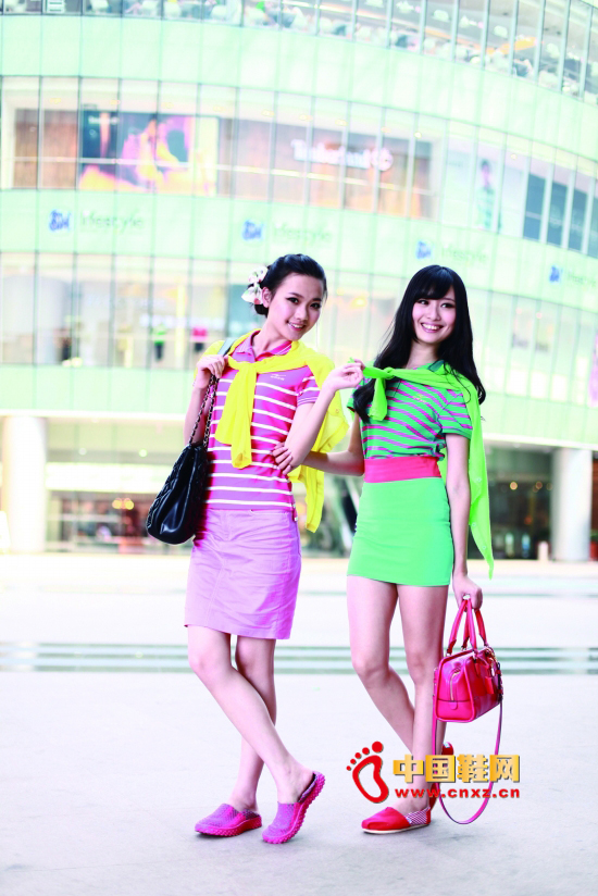 一個人美得不明顯,兩個人才美得打眼:玫紅條紋微領T外披黃色開衫,海洋綠條紋微領T外披果綠色開衫,和閨密穿上它們,一起出街,我們就是最耀眼的閨密。(中國鞋網-最權威最專業的鞋業資訊中心)