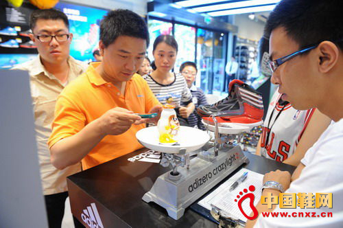 此次adizero Crazy Light 2的店內互動活動吸引了大量的消費者參與,活動現場也排起了長龍。通過天秤的稱重,使消費者更加直觀地了解了adizero Crazy Light 2 269克的極限之輕。