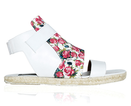 不免俗地,創意總監Ana還是完完整整地將系列分作兩個性別,特別將屬于女性的花布使用在男鞋上,以簡單的鞋面構造襯出花布的柔和,再以麻制材質鞋底使鞋品不至于過于娘為且更具度假感,造成和諧的沖突感。在女鞋上,則避開花布材質,以利落的線條為主,使用保守卻不易犯錯的塑料粗跟,帶來無比的風尚感。
