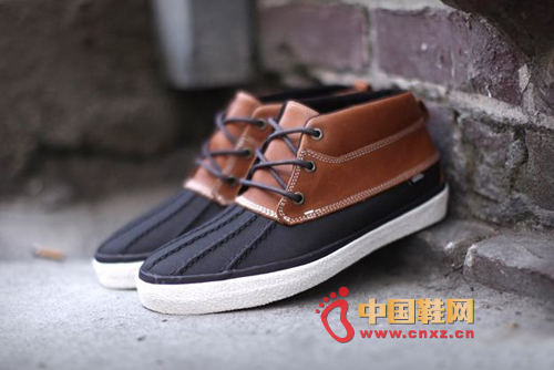 【中國鞋網(wǎng)-時新裝備】潮流鞋款Vans的最新發(fā)表——Vans California Chukka Del Pato CA,以當紅的outdoor元素為設計,將登山靴的概念轉(zhuǎn)化為球鞋的造型現(xiàn)身,包括鞋頭的設計就像是Duck Boots般的感覺,另外搭配上大地色系皮革的混搭組合,讓整體造型相當搶眼,目前鞋款可以在包括District Footwear等地購得。