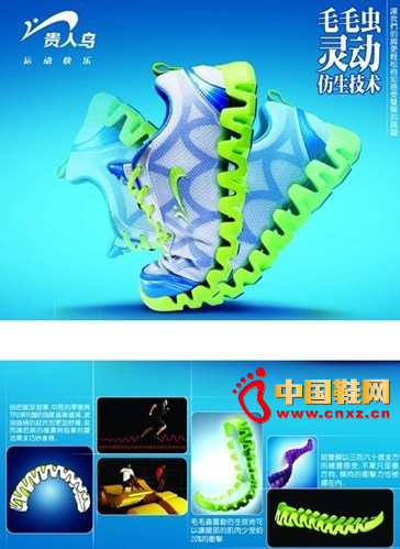 產品設計與高科技材料的運用,充分體現了貴人鳥品牌的運動快樂理念,支撐起貴人鳥專賣店的品牌形象。之前貴人鳥的底中底獨特超彈膠舒適設計、毛毛蟲靈動設計、無縫線鞋口3D舒適設計、超輕52克外底設計,加上如今的人體工程學動力系統,都將給消費者帶來前所未有的柔軟舒適的快樂。讓貴人鳥成為運動快樂品牌的引領者。”(中國鞋網-最權威最專業的鞋業資訊中心)