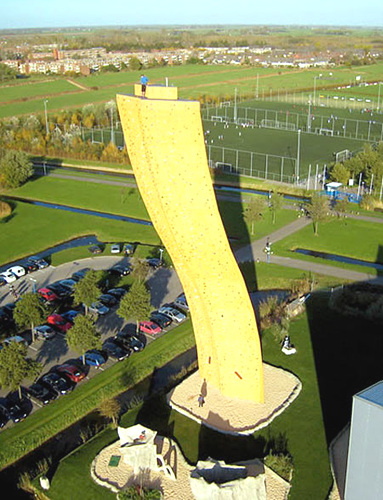 它是世界上最高的攀爬墻,當然這里不考慮自然的山峰、懸崖以及其它不是專門為攀爬設計的人造建筑。這種曲線設計使得有的部位很容易攀爬,適合于初學者,同時另外的部位則很困難,適合有經驗的攀巖者去挑戰。(中國鞋網-最權威最專業的鞋業資訊中心)