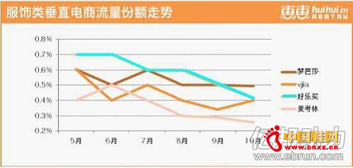 惠惠購(gòu)物助手的《網(wǎng)購(gòu)價(jià)格不完全報(bào)告》也顯示,2012年10月份,好樂(lè)買的流量相比5月份的下降幅度達(dá)到35.4%,在B2C市場(chǎng)流量占比也下降到0.4%(其6月份的流量占比為0.7%)。11月份,這一占比持續(xù)下降到0.3%。