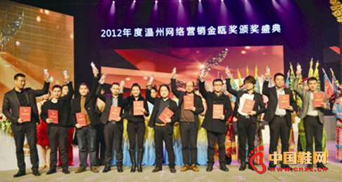 【中國鞋網-國內動態】昨日下午,“2012年度溫州網絡營銷金甌獎頒獎盛典”在溫州廣電中心一樓演播廳舉行,百余位來自各行業領域的企業代表聚首頒獎盛典,共取網絡營銷“真經”。