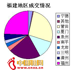 福泉莆三地幾乎占去所有成交筆數的3/4,說明三地的網絡購物較于全省其他地區來說更為發達。作為我省經濟發達的領頭地區,對于時下流行的網絡購物接受度也更高處于其他地區。(中國鞋網-最權威最專業的鞋業資訊中心)