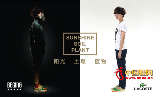 2012年冬季,一場揮之不去的霧霾籠罩原本清澈的()。當環境保護不再是一句出現在書本之中的口號,而真實地影響著每一個人的生活。推崇優雅與休閑為生活方式的Lacoste品牌與崇尚開始、本原、生活為原創精神的Begins在這一契機下不謀而合,環境保護(Environmental protection)的理念破土而出,由Begins主理周筆暢擔任創意,運用LACOSTE經典款型BARBADOS,作為創新與靈感的交匯。希望借由這一聯名款球鞋的誕生,呼吁更多年輕人關注環境,關愛自然。