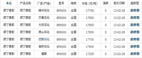 02月28日國內(nèi)順丁橡膠各地市場價格