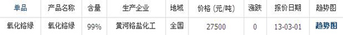 03月01日黃河鉻鹽化工氧化鉻綠調(diào)價一覽