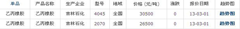 03月01日國內三元乙丙橡膠各地市場價格
