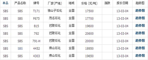 03月04日國內(nèi)SBS橡膠各地市場價格