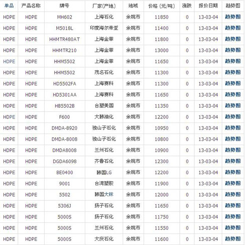 03月04日余姚塑料市場(chǎng)HDPE最新報(bào)價(jià)