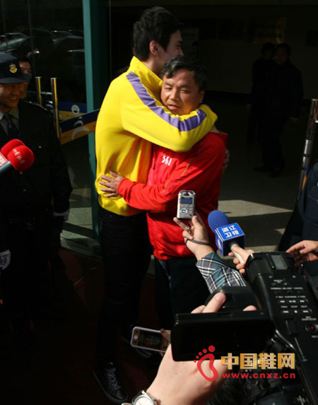 【中國鞋網-體壇快訊】奧運會冠軍孫楊和教練朱志根出現在浙江省游泳運動管理中心大樓門口,在此守候半小時之久的媒體記者蜂擁而上,這是孫楊師徒和好之后首次亮相。孫楊告訴媒體記者說,這段時間以來,他一直在堅持游泳,只是沒有集中訓練。教練朱志根則表示,孫楊目前狀態還沒有恢復。最后,孫楊笑著擁抱教練,隨后轉身進樓。