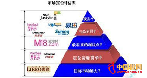 定位真是個技術活,涉及到目標細分市場、關鍵成功要素、競爭分析、消費者調研和企業內部價值鏈分析等各種戰略規劃技巧,定位能左右企業命運,是源頭,淘寶上搞個促銷只是小戰術行為,不會改變企業命運。互聯網的未來在于精確定位、通過大數據對首先對顧客有個更好的了解以便科學決策、及時提高整體競爭能力。(中國鞋網-最權威最專業的鞋業資訊中心)
