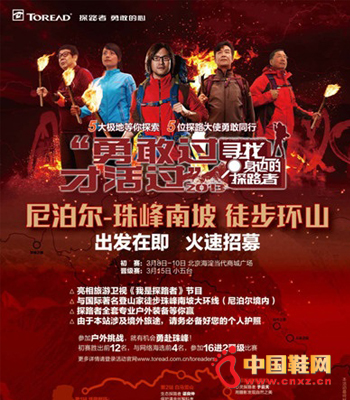 【中國鞋網-品牌動態】“勇敢的心--尋找身邊的探路者(專賣店)”活動的第一站“極峻之地珠穆朗瑪”志愿者正在招募中,戶外運動愛好者可通過探路者官網活動專題頁面在3月11日前進行報名。上傳勇敢照片并發布感言,就有機會躋身網絡海選的四名優勝者之一。
