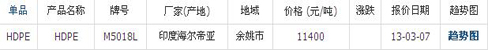03月07日余姚塑料市場HDPE-M5018L最新價格