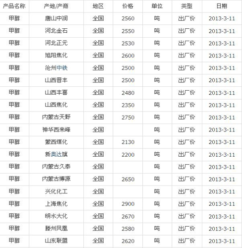 甲醇:3月11日國內市場價格快報
