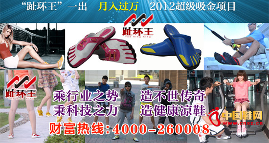 【中國鞋網(wǎng)-品牌動態(tài)】21世紀是一個步伐矯健的時代,對于生活()的世界人而言,腳穿一雙質(zhì)地,外觀都頂呱呱的鞋,就顯的尤其的重要,然而縱觀全球鞋業(yè)的市場,真有著一款后起之秀般的鞋子正攻向中國的市場,那便是趾環(huán)王鞋中鞋。