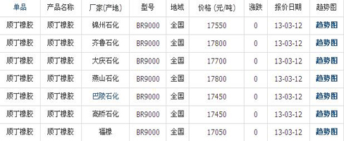 03月12日國內(nèi)順丁橡膠各地市場價格