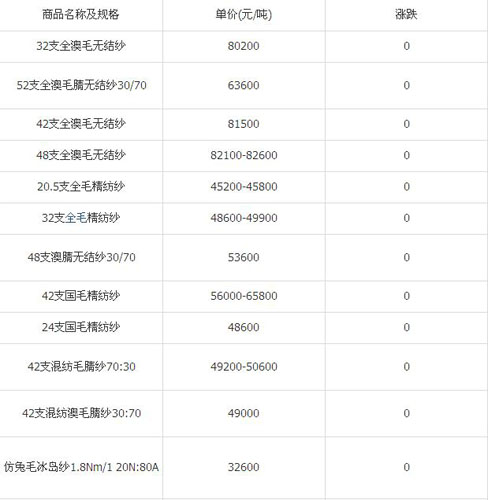 2013年03月12日濮院羊毛紗市場價格行情及漲跌