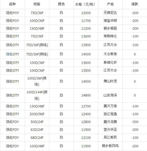 2013年03月15日浙江長興輕紡市場滌絲價格行情及漲跌