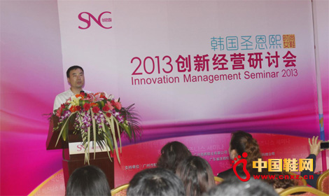研討會(huì)上,首先廣州恩熙鞋業(yè)有限公司董事長朱柏翰先生致辭,介紹了圣恩熙女鞋的戰(zhàn)略規(guī)劃,及品牌升級部署。也強(qiáng)調(diào)了圣恩熙女鞋品牌將一直在不斷創(chuàng)新,迎合現(xiàn)代女性的消費(fèi)需求,堅(jiān)持做“最具女人味韓國時(shí)尚女鞋”。其次,廣東省經(jīng)銷商商會(huì)會(huì)長蔡先生站在行業(yè)高度,講述了2013年女鞋連鎖加盟發(fā)展必然趨勢,消費(fèi)者對具有創(chuàng)新精神的品牌和企業(yè)更加關(guān)注。在今后的發(fā)展中,企業(yè)更應(yīng)該注重創(chuàng)新,不斷迎接新挑戰(zhàn),創(chuàng)新經(jīng)營模式。最后,廣州鞋業(yè)商會(huì)陳小姐語重心長地指出:中國是全球最大的鞋業(yè)生產(chǎn)基地,女鞋消費(fèi)市場需求非常大,女鞋品牌的平均消費(fèi)需求將達(dá)男鞋消費(fèi)比例的5倍,現(xiàn)代女性對女鞋的需求空間遠(yuǎn)遠(yuǎn)在擴(kuò)大,并且像類似于“時(shí)尚女鞋創(chuàng)新經(jīng)營研討會(huì)”這樣的行業(yè)論壇,要常態(tài)化舉辦,為女鞋行業(yè)增創(chuàng)快速發(fā)展新優(yōu)勢,推動(dòng)鞋業(yè)品牌健康發(fā)展。