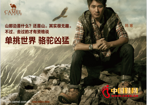 【中國鞋網-品牌觀察】駱駝(專賣店)以千萬身價簽下韓寒并發布新的平面廣告,"單挑世界 駱駝兇猛"來襲。駱駝品牌一直以特立獨行的戶外發展之路而備受關注與爭議,此次和具有同樣特質的80后領袖人物韓寒的合作,更帶來了一場"舌尖上的好戲",看好的人不在少數,不認同的也為數頗眾。兩方對壘,激烈辯駁"真偽戶外"。同時,駱駝"洋品牌"的背景也再一次引發激烈探討。