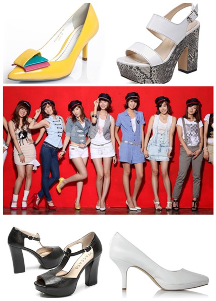 【中國鞋網-滾動快訊】韓國人氣組合girls generation是一只橫跨亞洲各國的青春美少女組合樂團,她們甜美可人的外形、青春活力的氣息以及美妙動聽的歌聲無一不感染國內歌迷,以至她們的每場演出裝扮及拍攝海報的鞋服造型成為多數少女歌迷們效仿的人氣著裝之一。