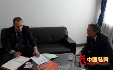 中國塑料加工工業協會副秘書長、中國塑協人造革合成革專業委員會秘書長馮庶君與阿爾及利亞駐華使館一等秘書李達·內柏斯