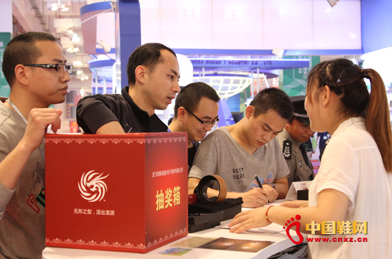 本屆鞋博會還吸引了眾多新品牌前來參展,位于三樓展區的龍鳳商城就是其中一個新品牌。走近龍鳳商城展館,一個巨大潔白的羽翼造型設計引人注目,許多專業觀眾前來參觀,,大家耐心地聽著工作人員的介紹,與此同時龍鳳商城展會舉辦的抽獎互動活動也如火如荼地進行著,一旁等待抽獎的觀眾躍躍欲試,享受著來自品牌帶來的好運氣。