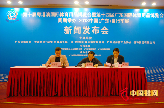 【中國鞋網(wǎng)-展會新聞】第10屆粵港澳國際體育用品博覽會暨第14屆廣東國際體育用品博覽會、2013中國(廣東)自行車展,將于今年8月16日~18日在廣州琶洲中國進(jìn)出口商品交易會展覽館舉辦,組委會4月22號在廣州召開新聞發(fā)布會。本屆博覽會由廣東省體育局、香港特別行政區(qū)民政事務(wù)局、澳門特別行政區(qū)體育發(fā)展局、廣東省體育產(chǎn)業(yè)協(xié)會、恒和集團(tuán)有限公司聯(lián)合主辦。以“培育幸福導(dǎo)向型體育產(chǎn)業(yè)”為主題,展覽面積將達(dá)50000平米,設(shè)立標(biāo)準(zhǔn)展位超過2500個,預(yù)計參展單位近600余家。