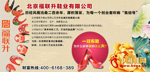 【中國鞋網(wǎng)-品牌動態(tài)】北京作為元明清三朝古都有著極為深厚的歷史文化積淀,即使是我們所說的普通話也是以北京話為藍本的。老北京的四合院、炸醬面在全國都有著極大的影響力,而作為我國華北地區(qū),最大的老北京布鞋的生產(chǎn)銷售企業(yè)——福聯(lián)升,在中國鞋業(yè)之中也有著舉足輕重的地位。