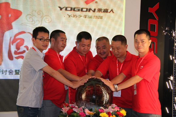 會議一開始,永高人董事長方宗陽、中國兒童用品研究中心秘書長陳樹青先生及四位永高人優秀代理商代表,共同上臺為永高人新標志啟動。