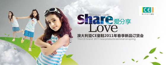 中國鞋網9月9日訊,澳大利亞CE童鞋“愛分享”2011年春季新品訂貨會將于9月21日在廈門云頂山莊大酒店隆重舉行。屆時,來自全國各地的經銷商共襄CE童鞋品牌盛舉。